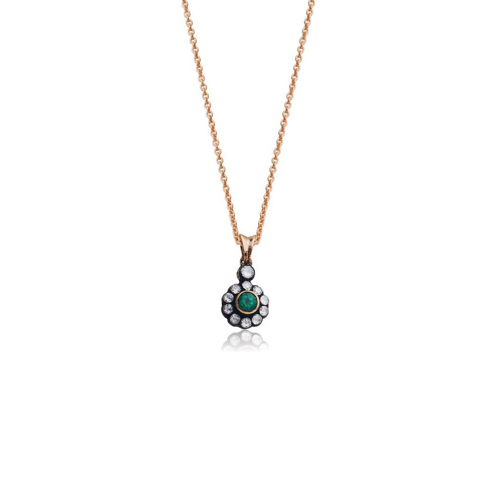0.13 Karat Zümrüt Taşlı Elmas Kolye