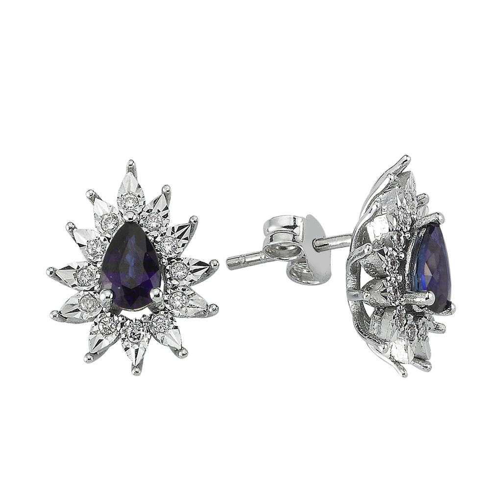 0.14 Karat Safir Taşlı Pırlanta Fantezi Küpe
