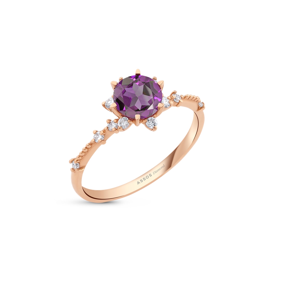 0.18 Karat Ametist Taşlı Pırlanta Yüzük