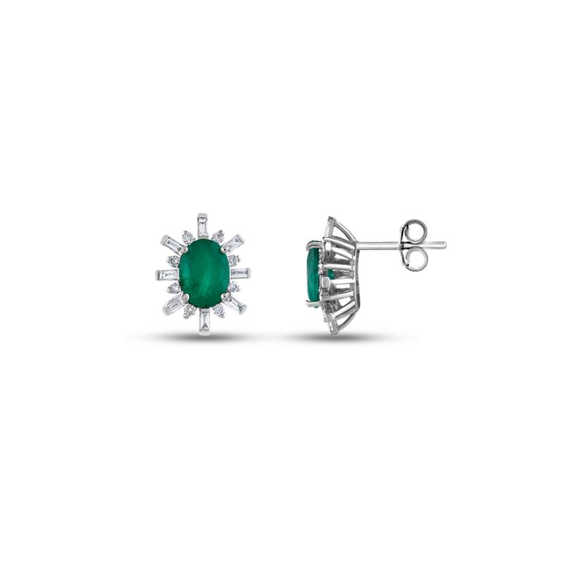 0.30 Karat Baget Taşlı Zümrüt Pırlanta Küpe