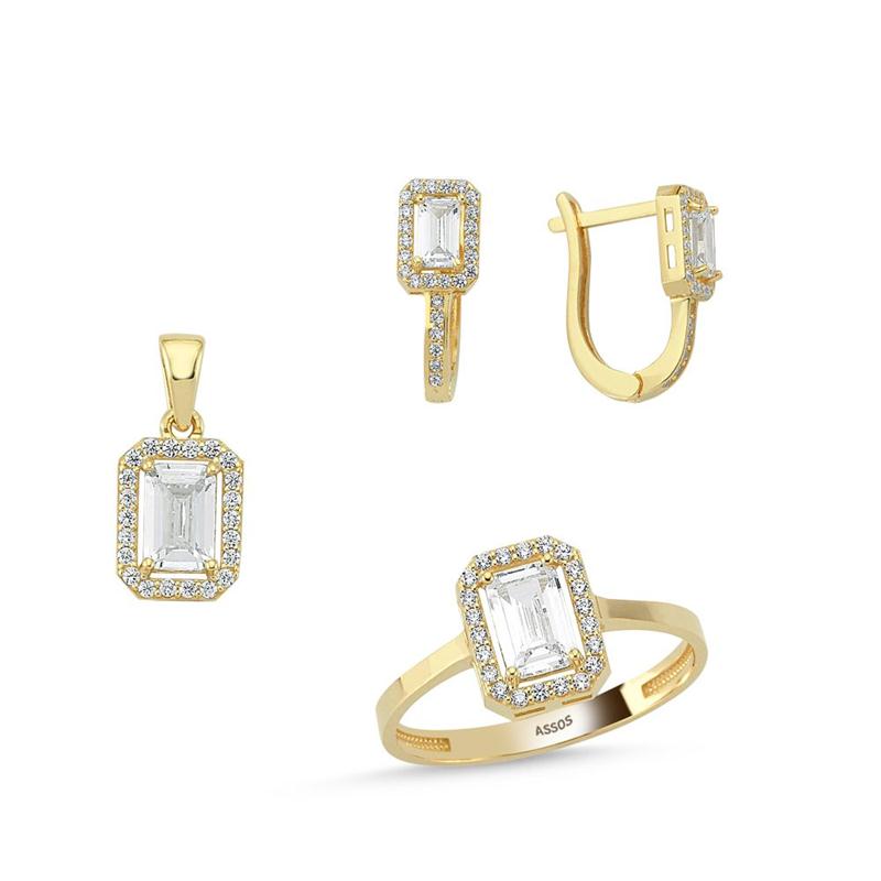 Baget Taşlı Altın Set