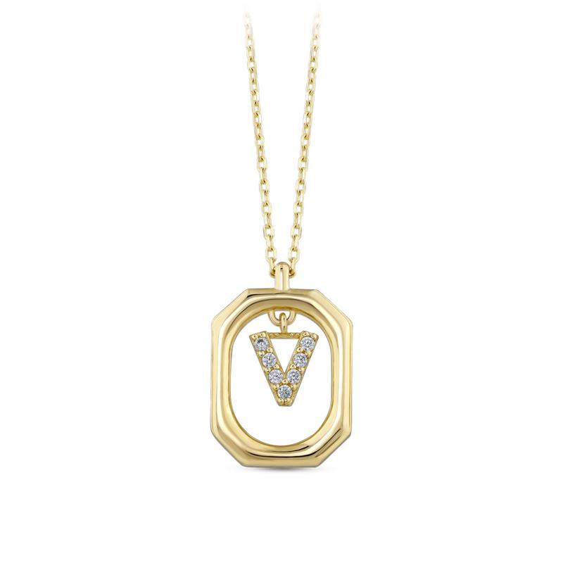 Taşlı Altın V Harf Kolye